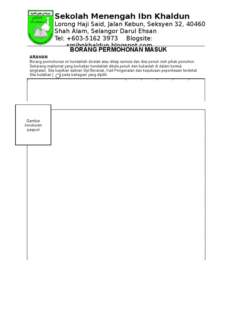 Borang Permohonan Masuk Sekolah Menengah Ibn Khaldun Pdf