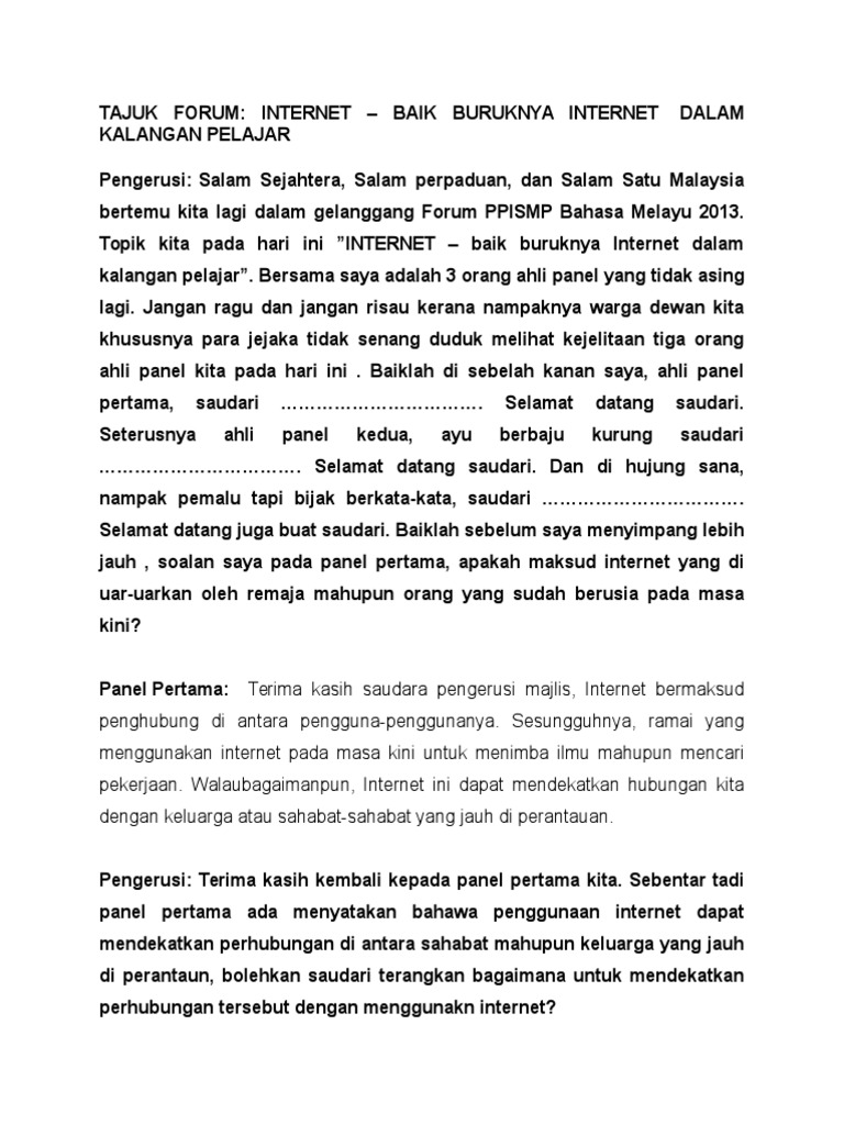 Teks Forum Bahasa Melayu 34wmo5j35wl7. Walaubagaimanapun tidak ke. 25 Skrip Forum Peranan Guru Dalam Menjana Transformasi Pendidikan Bil Skrip Forum 1 Sirih berlipat bersama pinang Pinang berasal Pulau Mutiara.