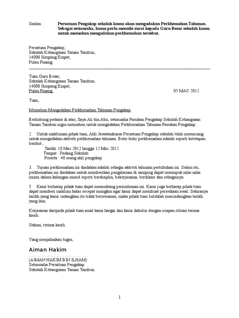 Contoh Karangan Surat Rasmi Pdf